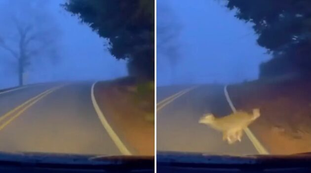 Driver captures terrifying moment mysterious creature appears in front of car: ‘That was so fast’