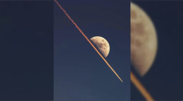 A photographer has captured a striking image showing what appears to be a jet cutting across the surface of the moon —…