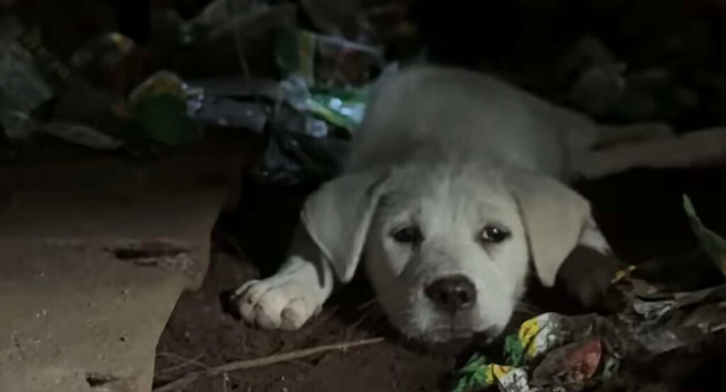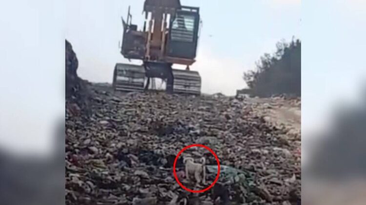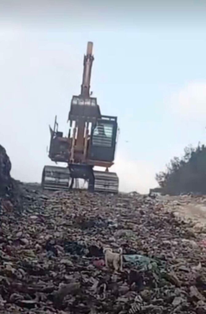 In the footage, the puppy could be seen searching for food among piles of garbage and twisted metal. At one terrifying moment, an excavator rolled forward, coming dangerously close to the puppy, who was nearly impossible to spot among the debris.