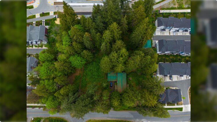 In an aerial view that captures both resilience and rapid development, a single house stands alone, hidden beneath a canopy of towering evergreens. The small property looks like a green island, encircled by freshly built townhouses and neatly paved streets. While progress has reshaped the neighborhood, one elderly woman has chosen to hold onto her home, resisting the pressure to sell or relocate.