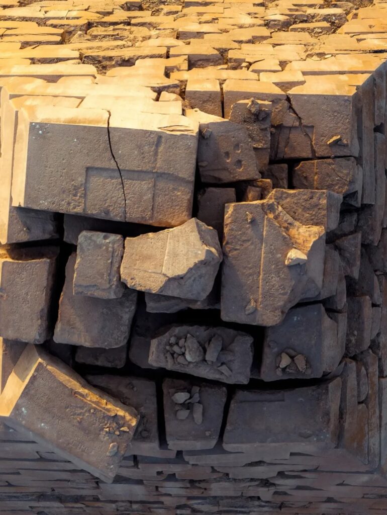 The pyramid was built using massive limestone blocks, carefully cut and aligned with remarkable precision. It forms part of a larger funerary complex that includes temples and the nearby Great Sphinx of Giza, one of the most famous sculptures in the world.