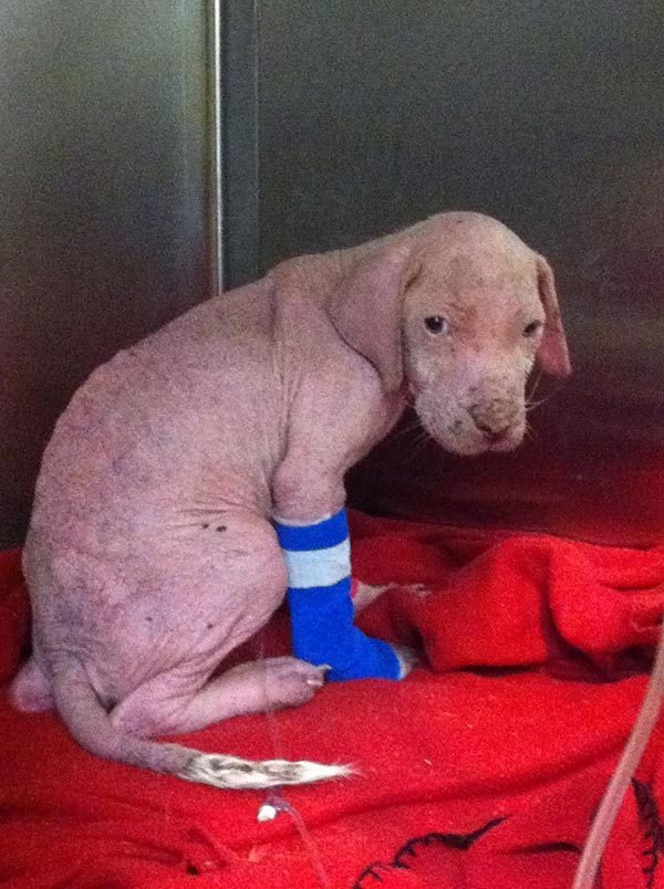 When Mojo arrived at the shelter in 2013, the sight was unforgettable. Joey later described the puppy’s condition by saying his “whole body was a complete scab.” It was immediately clear that Mojo couldn’t wait.