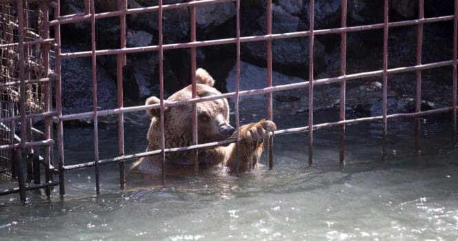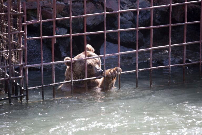 As if their captivity wasn’t bad enough, their cage was positioned dangerously close to a riverbank, leaving them at the mercy of seasonal floods. One year, disaster nearly struck when rising waters engulfed their tiny prison. The helpless bears came within inches of drowning, trapped behind iron bars with no way to escape.