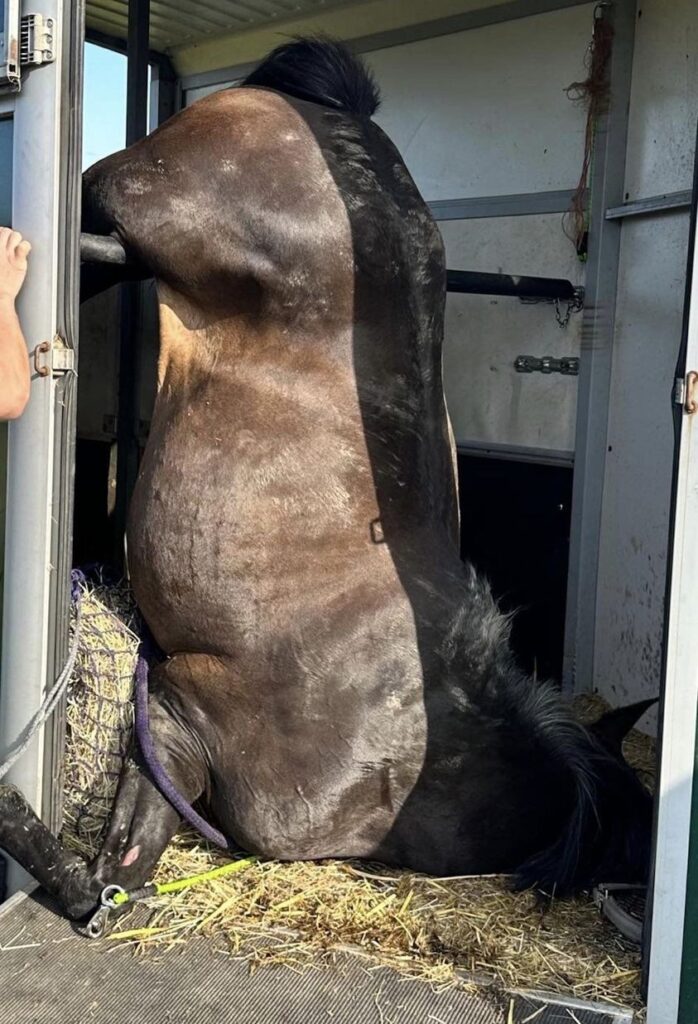 On August 4, Britain’s Lorna Madden loaded her “well-traveled and well competed” broodmare Grace into the trailer, taking her to new grass on the field. After shutting the trailer, she got into the car and started driving when she heard Grace whinnying and stamping in the back.