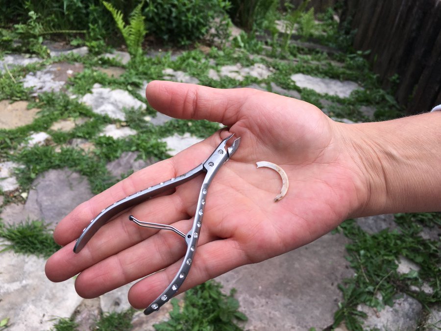 She worried that if she took Bucky to a vet they may not be able to do anything for him and the journey would stress him out too much so she grabbed her cuticle trimmers and attempted the job herself.