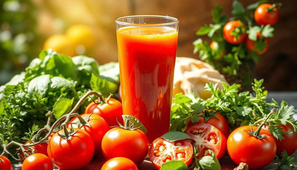 Your skin benefits as well. Lycopene and vitamin C protect against sun damage, stimulate collagen production, and promote a healthy, glowing complexion. Tomato juice’s natural detoxifying properties help eliminate impurities and reduce acne, giving the skin a clearer and more youthful appearance.