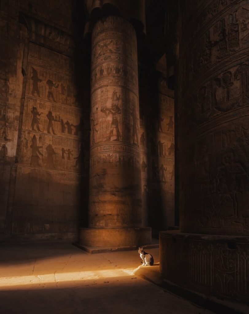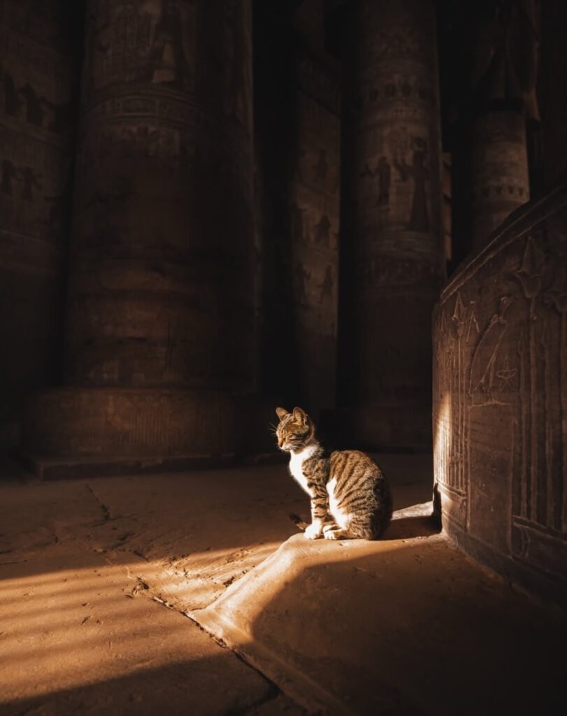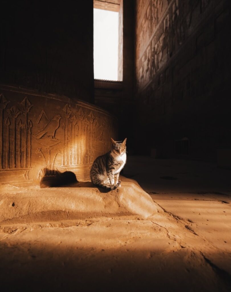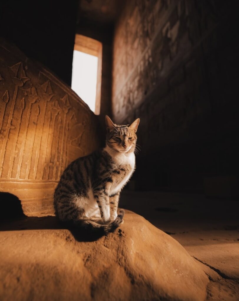 Cat becomes a familiar presence inside ancient Egyptian temple