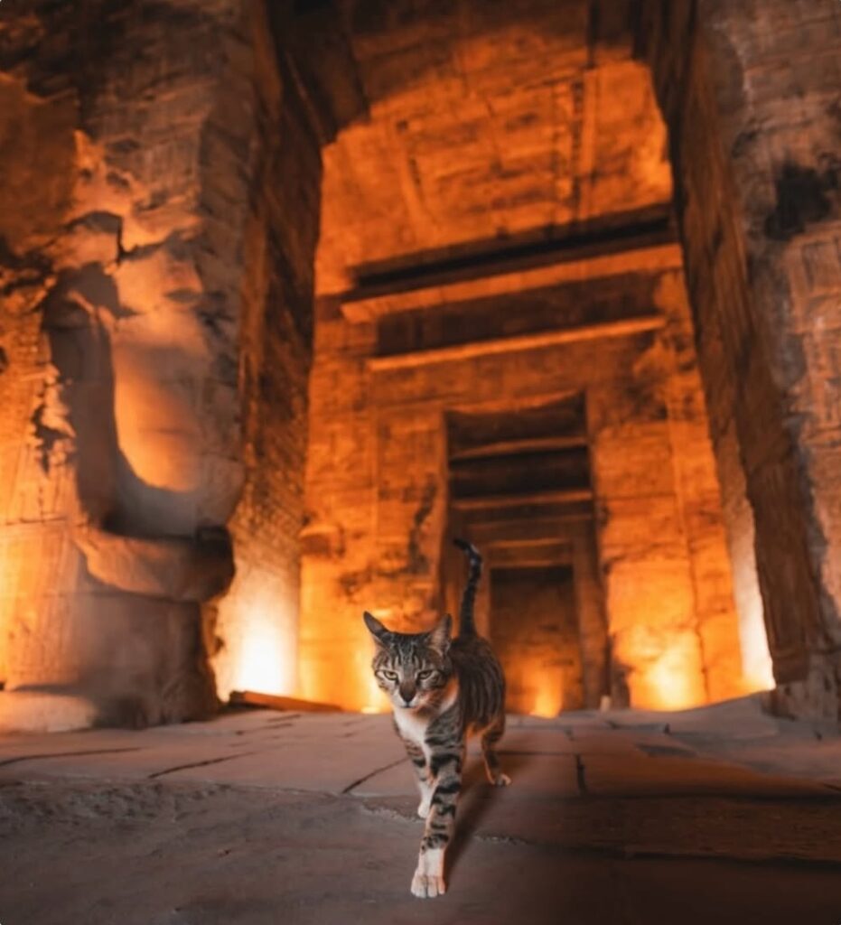 • Cat becomes a familiar presence inside ancient Egyptian temple
