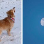 A Woman Captures The Moment Her Dog Discovers The Moon For The First Time.