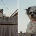 People Are Uneasy About This Little Dog Peeking Over A Fence
