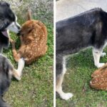 Heartwarming Moment Caring Dog Comforts Sick Deer Found On Owner’s Ranch