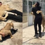 A lioness is reunited with the guy who reared her as a youngster in an utterly charming scenario. The kitty rushes to meet her old pal with a massive snuggle when she spots him enter her area. The lioness is overjoyed to see the guy who used to look after her when she was a young cub and wrestles him to the ground, showering him with love and attention. The lovely event was … [Read more...] about Adorable situation The man who nurtured her as a youngster has a great cuddle with the lioness