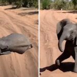 This is the cute moment a newborn elephant takes over a road in a Zimbabwean nature reserve just for fun. The baby calf seemed unconcerned about the visitors' presence, rolling around in the sand right in front of their vehicle. One of the eyewitnesses captured the scene on tape, and it's pure cuteness overload! The visitors in the safari trucks can't get enough of the … [Read more...] about Baby elephant blocks road to play in the sand in adorable footage
