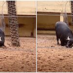 A lady called Saman shared a touching video of a buffalo approaching an overturned tortoise in his enclosure. The enormous beast knelt down and gently flipped the hapless terrapin over with his horn. The buffalo received a standing ovation from the onlookers for his good act. @manaskamran OKAY NATURE GO OFF #fyp #nature #zoo #animals #buffalo #turtle ♬ original sound - … [Read more...] about A thoughtful buffalo gently flips an upside down tortoise over with his horn