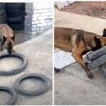 A inquisitive dog approached a group of four tires that were spread out on the ground and worked out how to pick them up all at once. When the dog discovered the tires were different sizes, he rationally stacked the smaller ones inside the larger ones, then inserted his nose within the pile and picked it up. The clever dog assists his owner in moving tires and even discovers … [Read more...] about The Dog Discovers a Way to Pick Up Four Tires at Once
