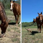 A trio of horses has been sighted babysitting a newborn fawn in a stunning demonstration of care. On a ranch west of Steamboat Springs in Routte County, Colorado, the tiny one was waiting for its mother. The horses approached the small creature and began to care for it when they learned it was alone. The ranch's owner, Kally May, had observed something peculiar with her … [Read more...] about While its mother is away, horses look after the newborn deer