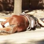 In her last moments, Officer sleeps on the pavement to console loving horse