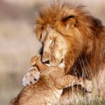 Majestic lion cuddles youngster, charmingly reenacting Mufasa and Simba’s famous hug