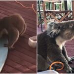 A very adorable koala visits a neighbor’s pool for loves and cuddling