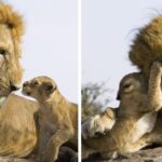Although he is the king of the jungle and one of the world's most fearsome predators, this majestic lion immediately transforms into a softhearted kitten when he first meets his little cub. During an expedition in Kenya's Masai Mara National Reserve, wildlife photographer Suzi Eszterhas captured the lovely event on camera. The photographs are just delightful! Although … [Read more...] about A lion cub sees his father for the first time in a sweet moment