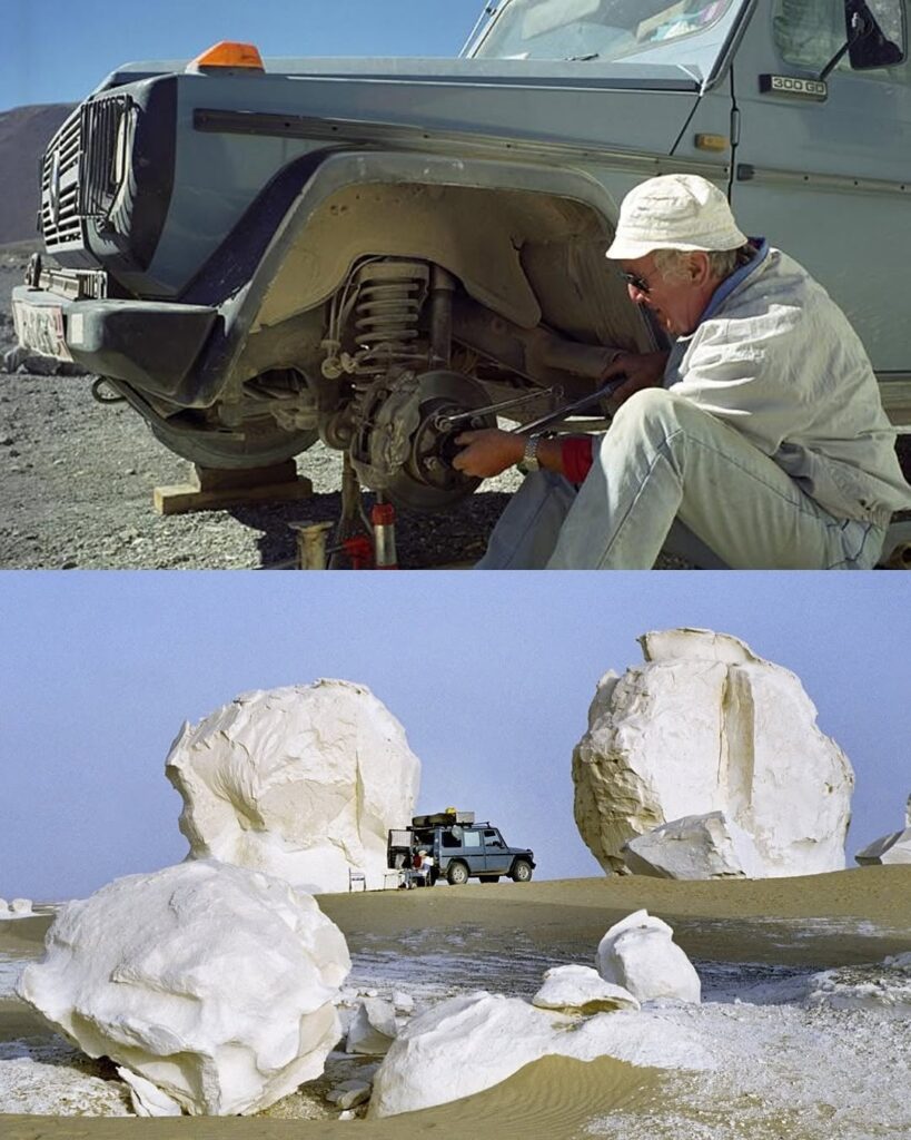 Their short trip evolved into a 26-year global journey, carrying them through 177 countries and nearly 550,000 miles. They crossed deserts, dense forests, mountain ranges, and crowded city centers — surviving on simple routines like cooking on a small stove and sleeping inside their vehicle.