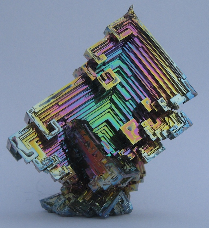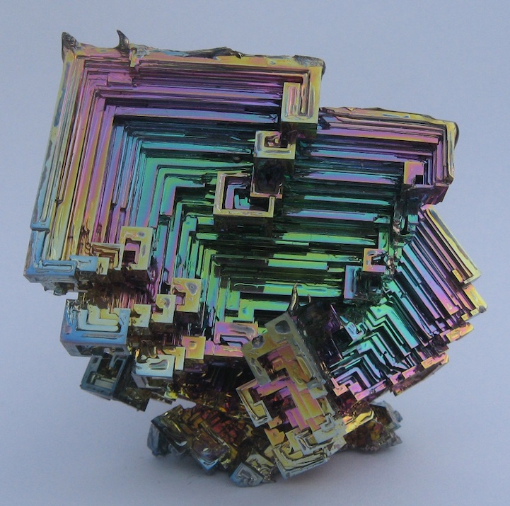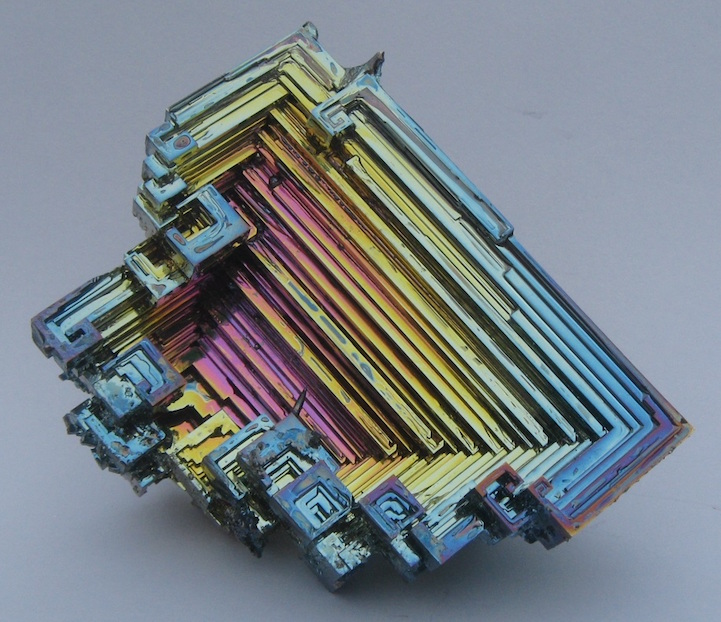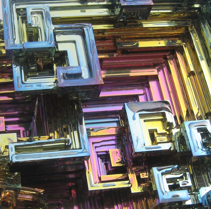 Bismuth crystal dazzle us with its iridescent form that also resemble tiny, hypnotizing stairs.