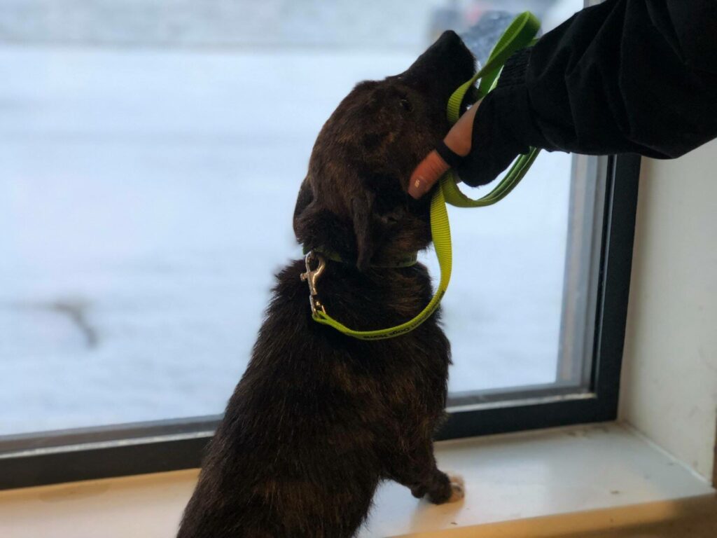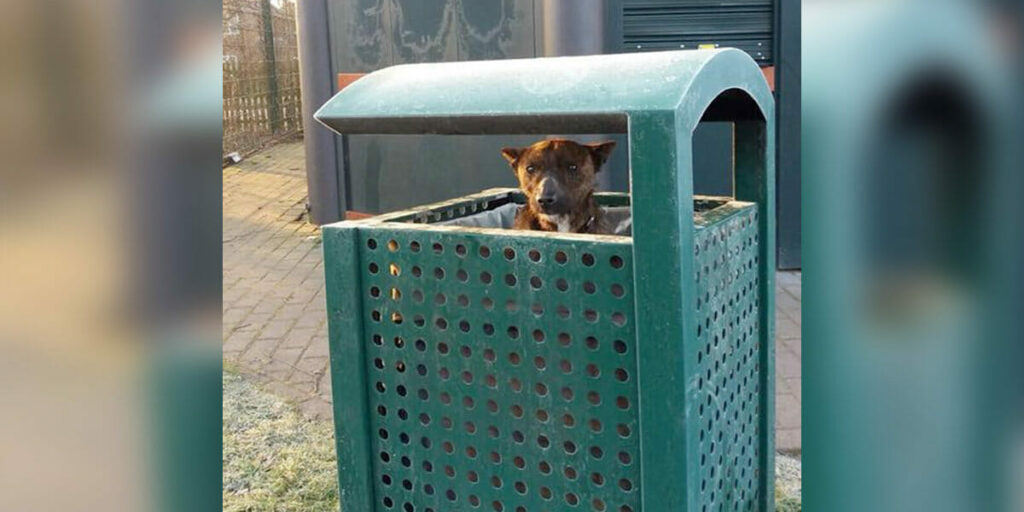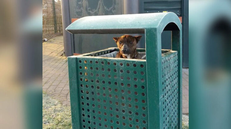It’s unclear if someone put the dog inside the trash can, or if he just decided to rest there during the cold winter night — but either way, he needed help.