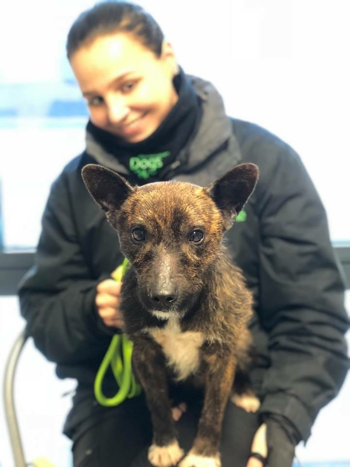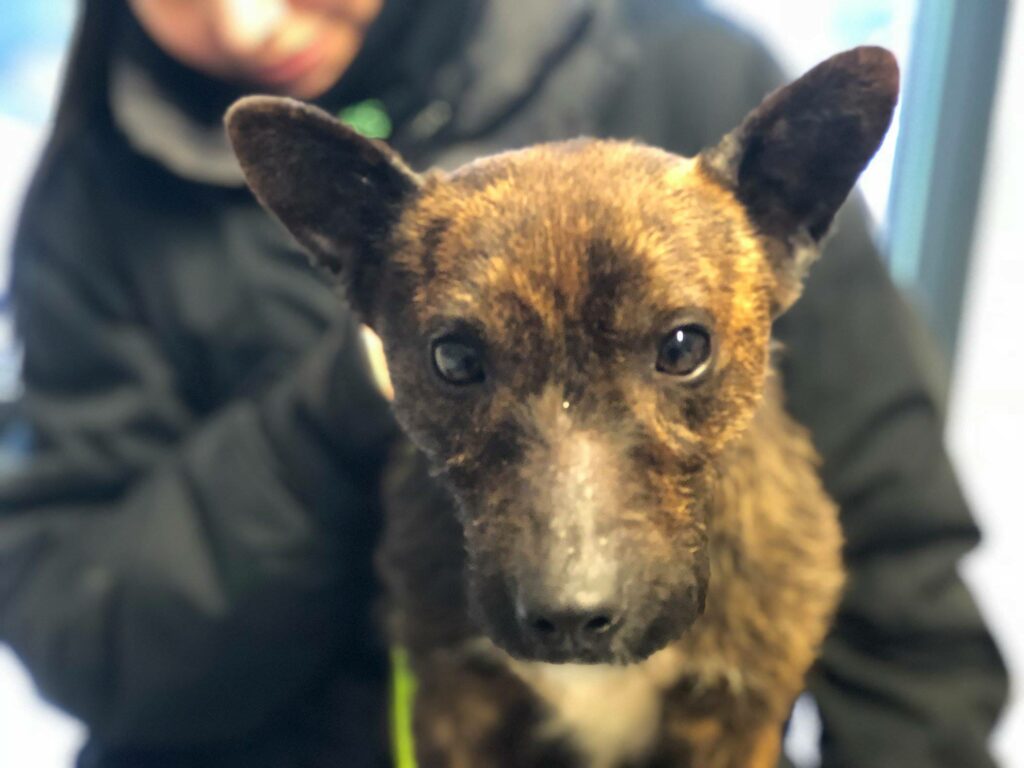 Nobody knows for sure how the dog, who is thought to be about 18 months old, got there or how long he was homeless.