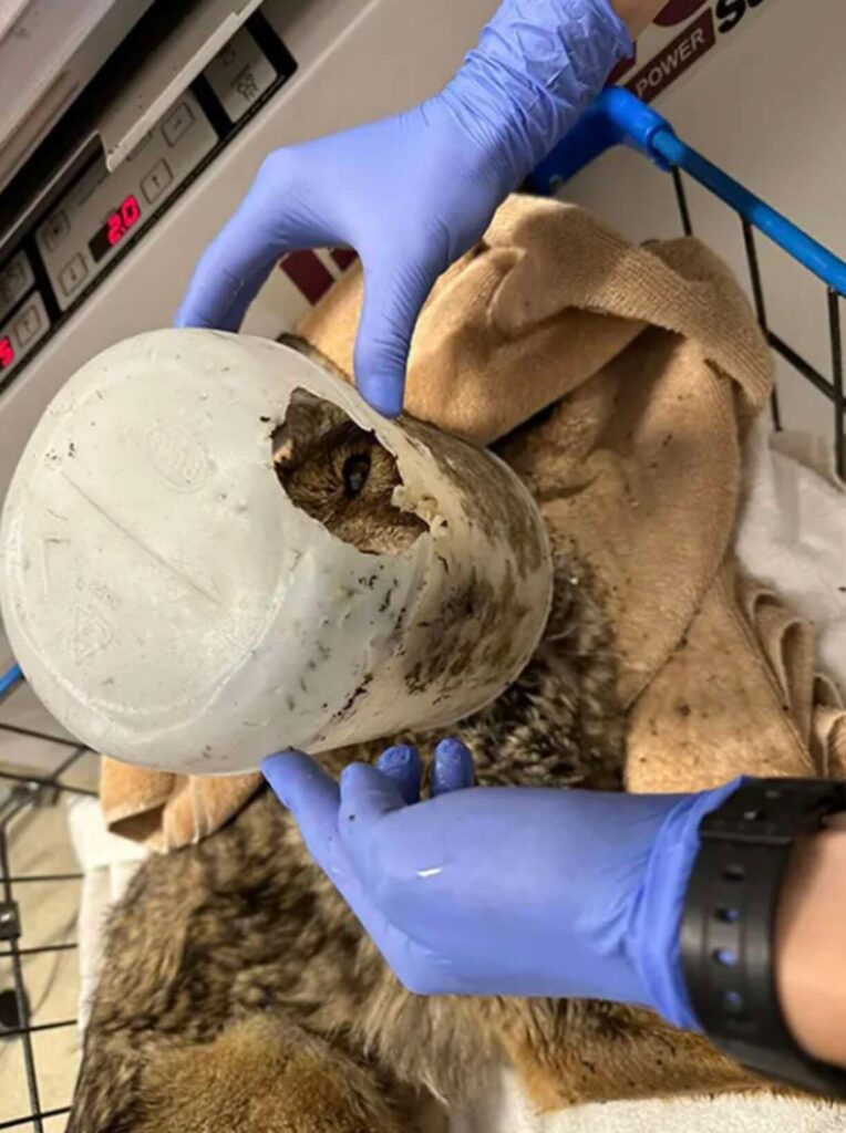 Finally free from the bucket, the coyote could breathe normally again.