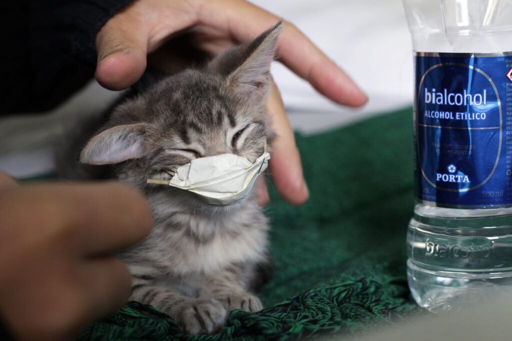 In rare and unusual cases, pet owners placed masks on their cats — an act that appears both precautionary and symbolic.