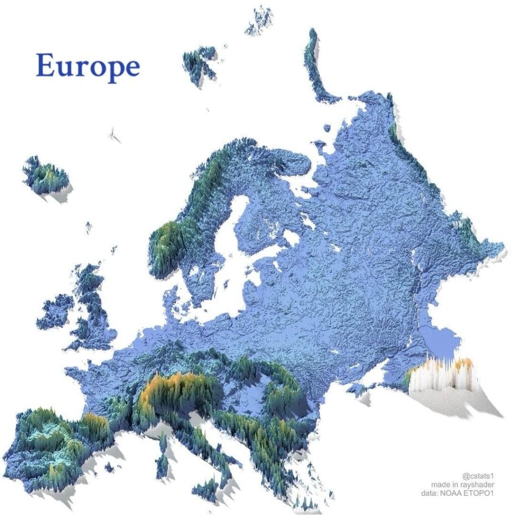 Viewed side by side, these elevation maps offer a striking snapshot of Earth’s geographic diversity, highlighting how continents differ not only in shape and size, but in vertical structure as well. They provide a clear visual explanation of why climate, ecosystems, and human settlement patterns vary so widely across the globe.