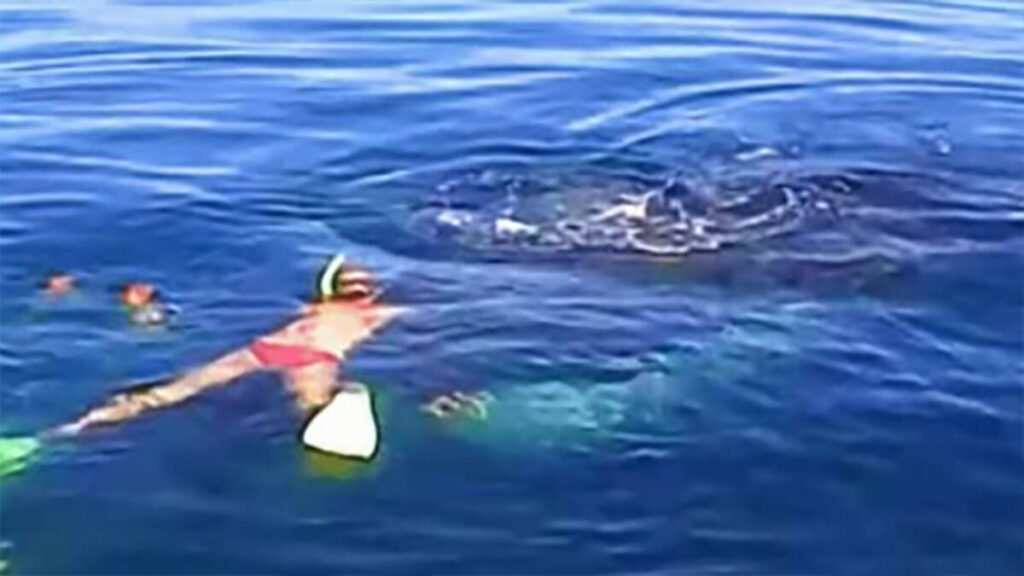 Michael and his family drifted beside the whale for several minutes, carefully watching for any sign of life. Then, unexpectedly, the whale rose slightly, exhaled, and that single breath revealed a glimmer of hope. Without hesitation, Michael jumped into the water to take a closer look.