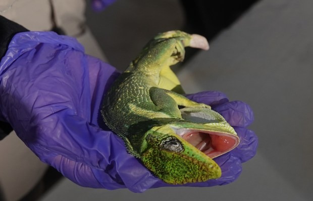 By 8:50 a.m. Sunday—just minutes before the Florida Fish and Wildlife Conservation Commission (FWC) opened its Sunrise drop-off site—John Bridgman and his wife, Lindsey, were already waiting with a trash bag containing nearly two dozen cold-stunned iguanas.