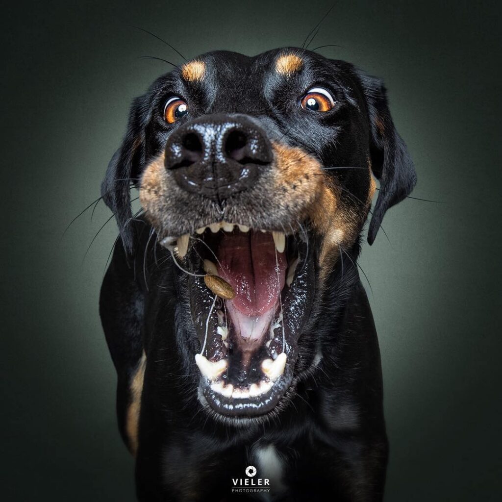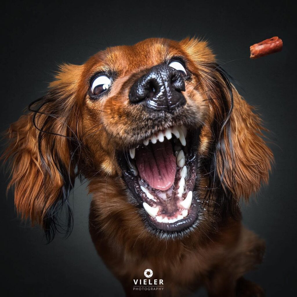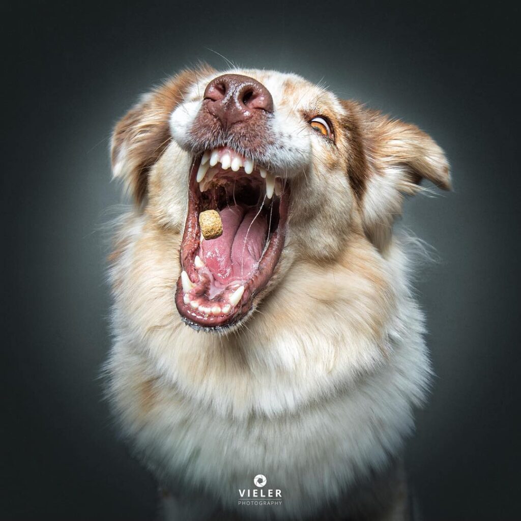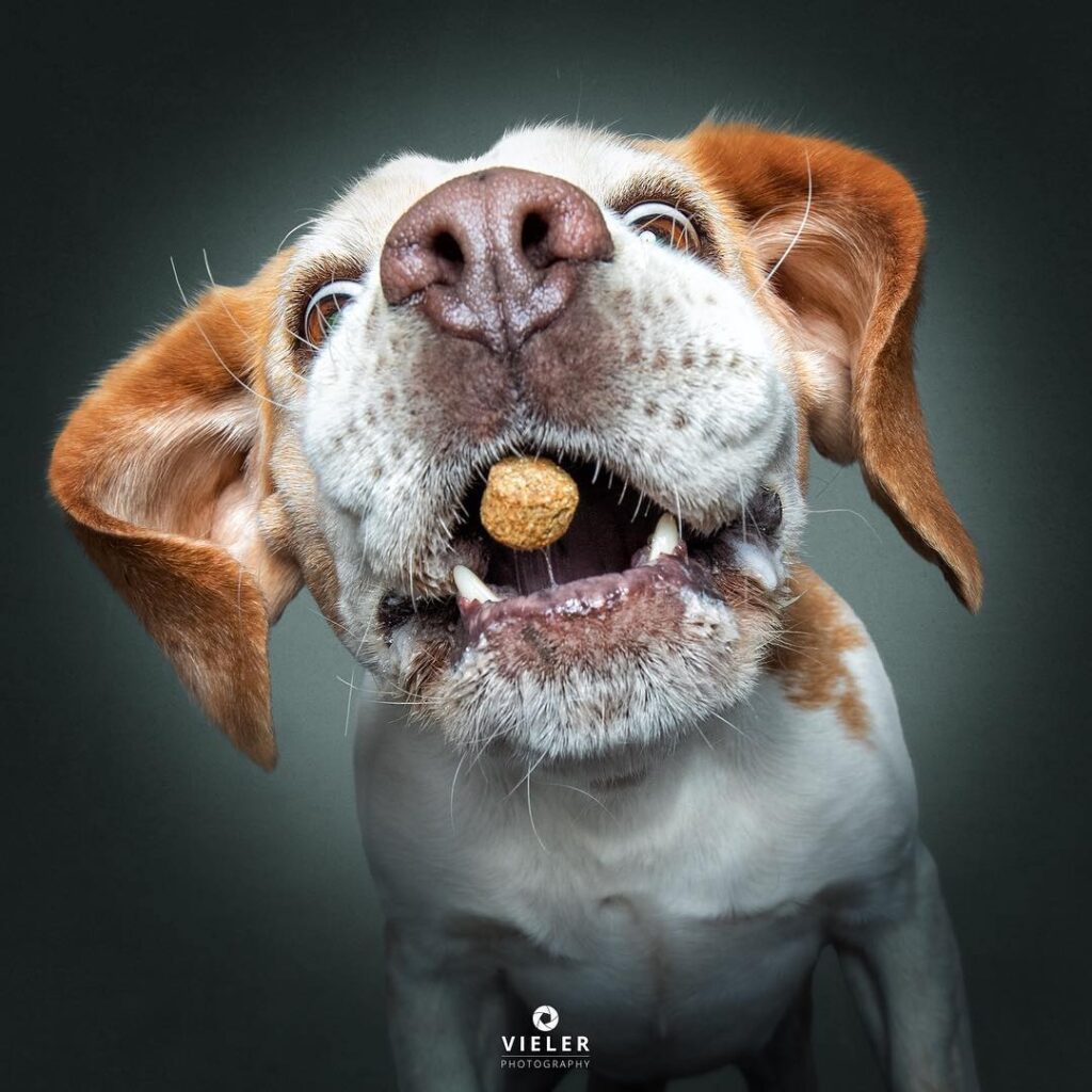Photographer Christian Vieler captures humorous moments of dogs catching treats in their mouths.