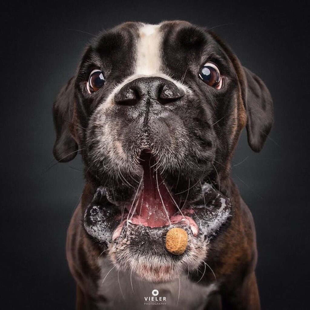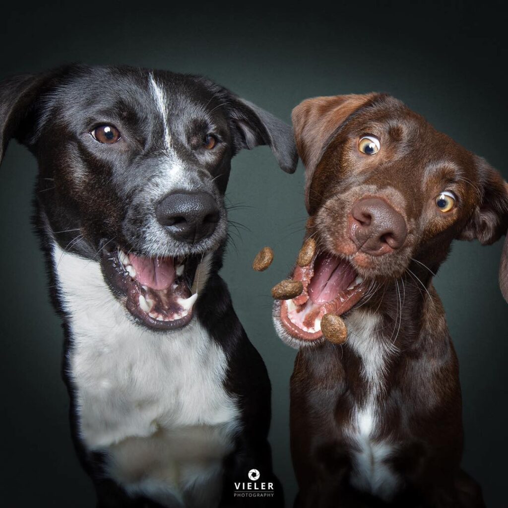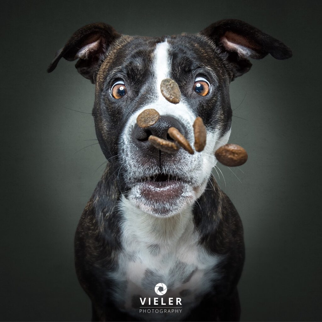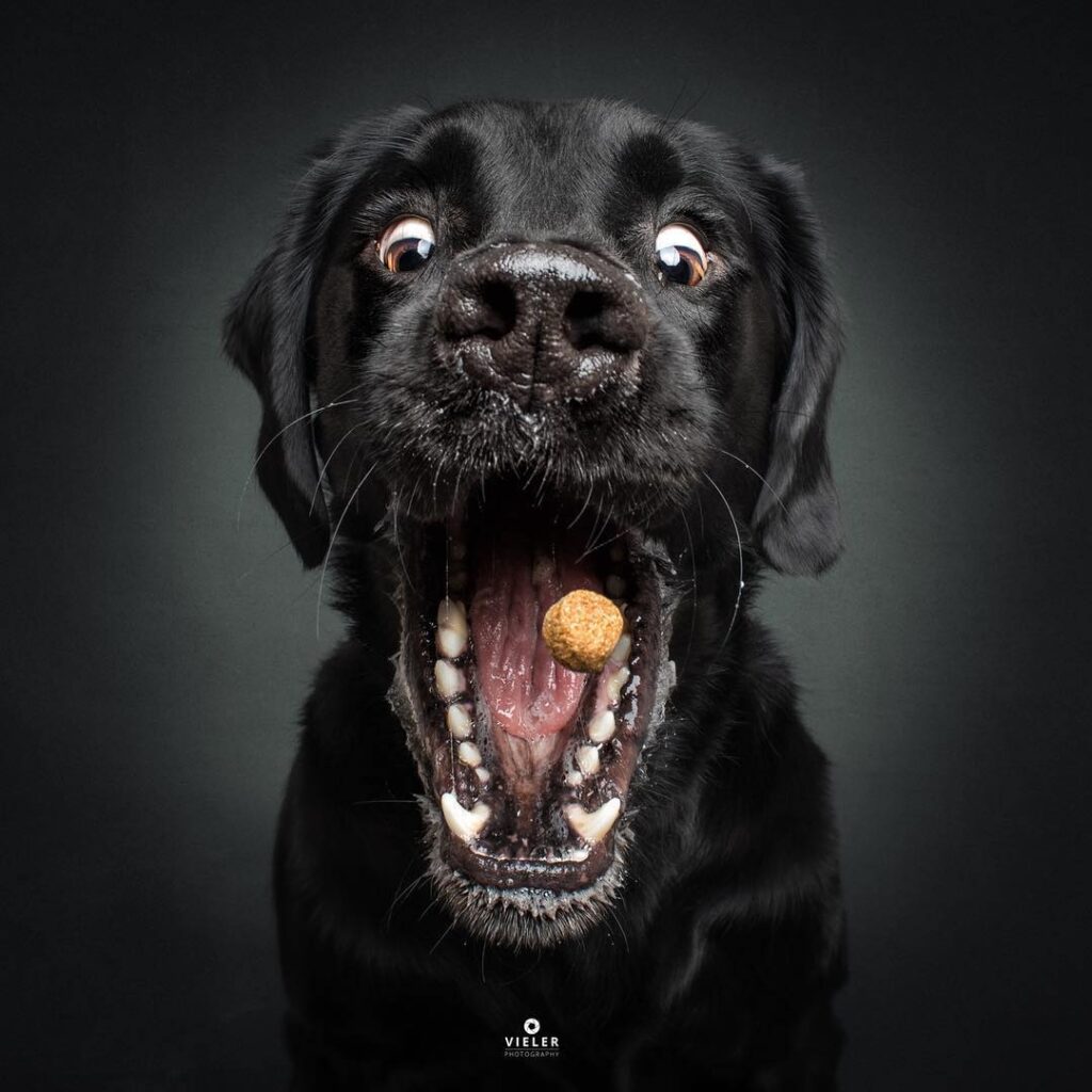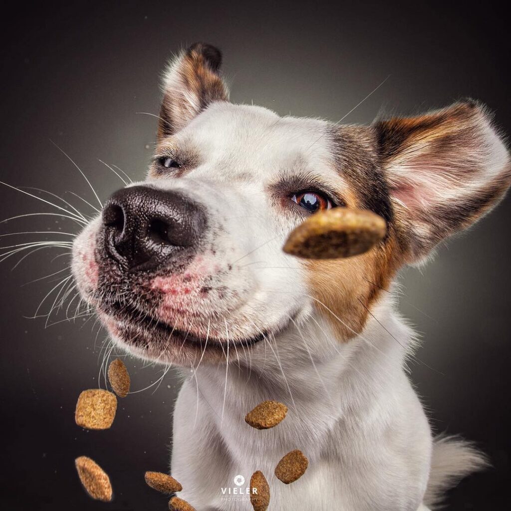 Photographer Christian Vieler captures humorous moments of dogs catching treats in their mouths.