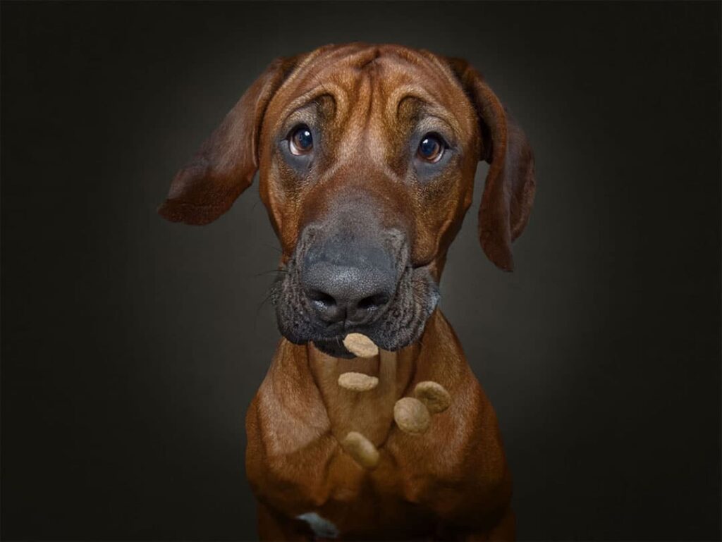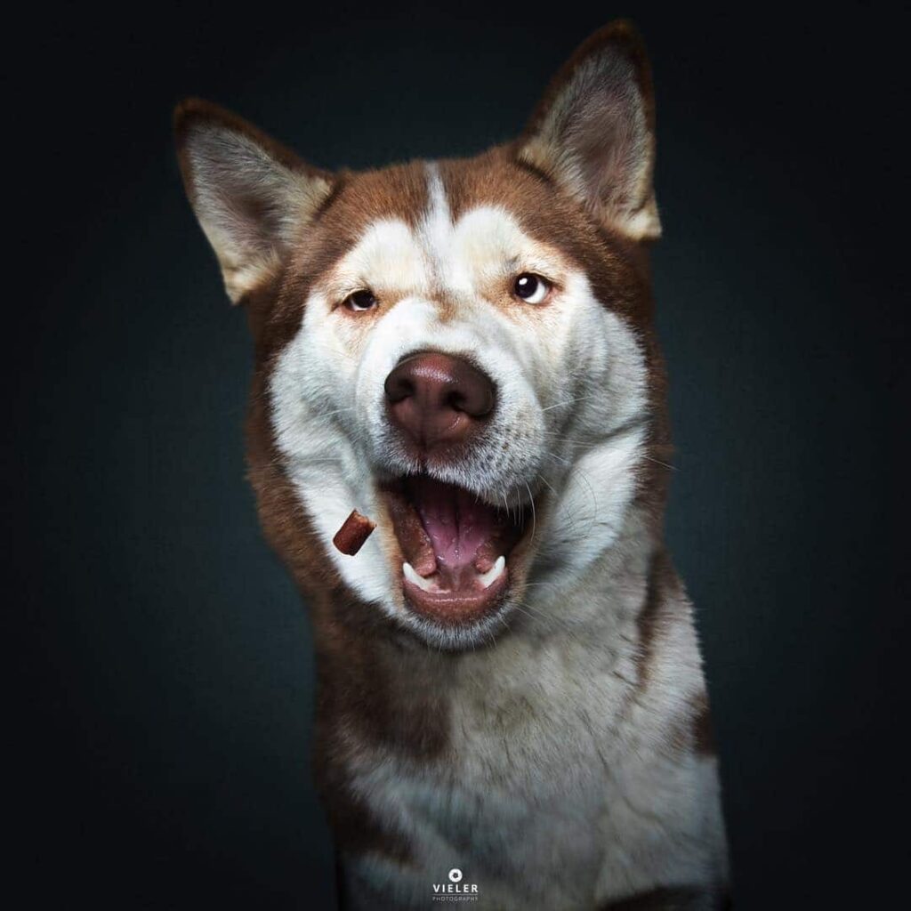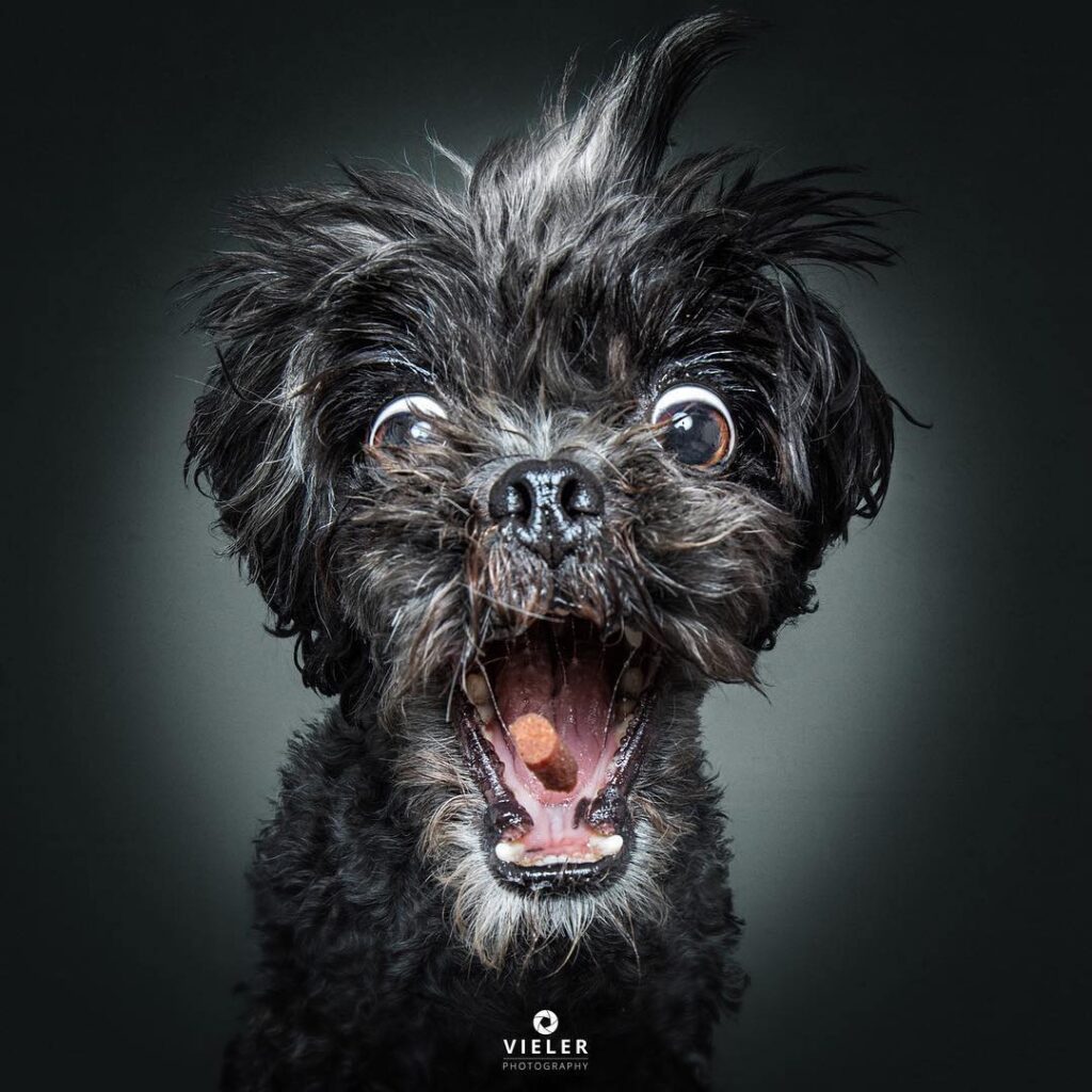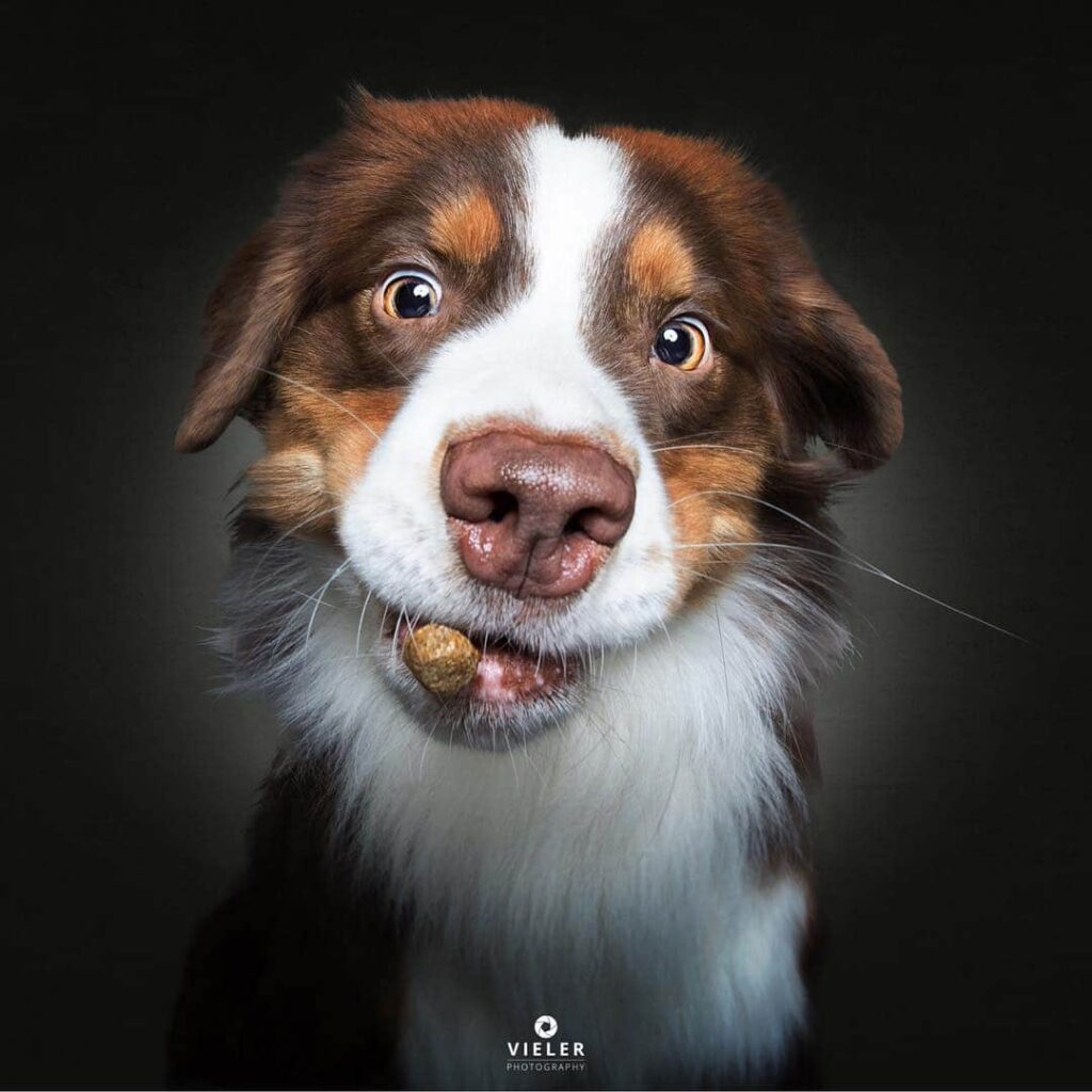 Photographer Christian Vieler captures humorous moments of dogs catching treats in their mouths.