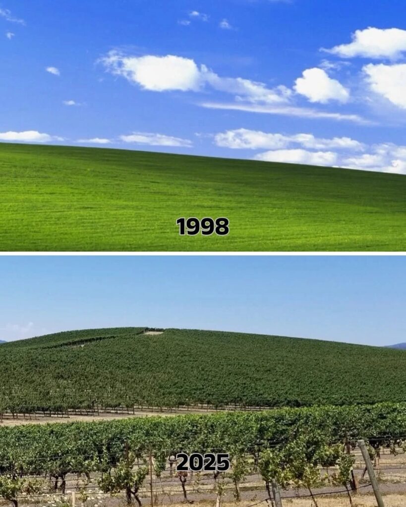 While the landscape has evolved back into vineyards, the iconic “Bliss” image remains one of the most widely viewed photographs worldwide, a symbol of nostalgia for millions of computer users.