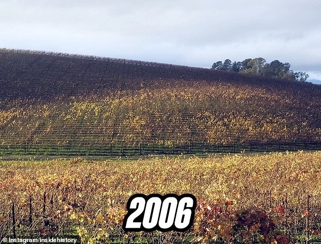 However, social media users have shared images comparing the site over the years — 1998, 2006, 2020, 2024, and 2025 — revealing that the iconic grassy hills have largely disappeared, replaced by a vineyard.
