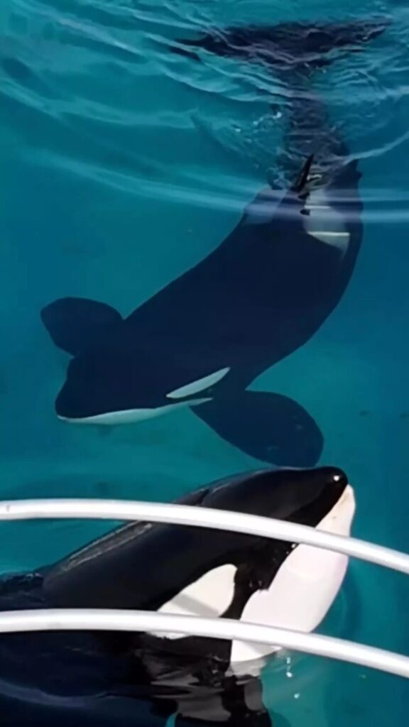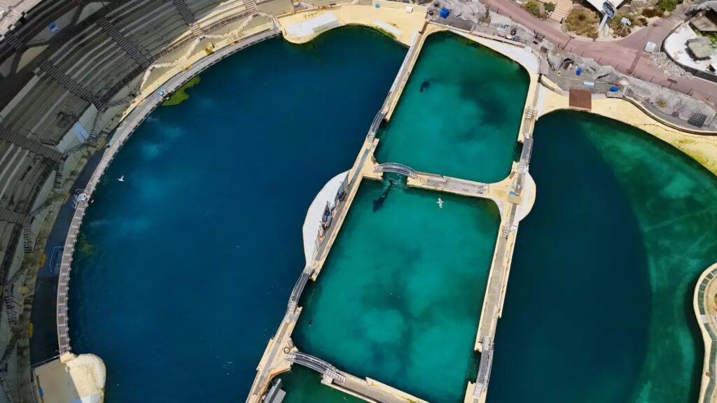 Two orcas, Wikie (23) and her son Keijo (11), were found floating listlessly in the stagnant waters of the abandoned Marineland of Antibes. The park, once one of Europe’s largest marine attractions, was shut down earlier this year following a new French animal welfare law banning orca performances.
