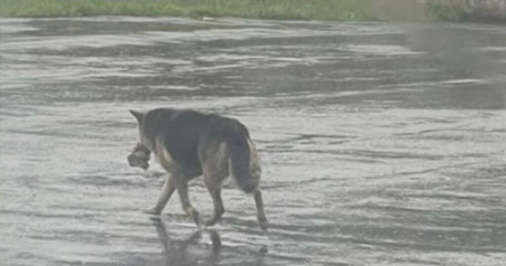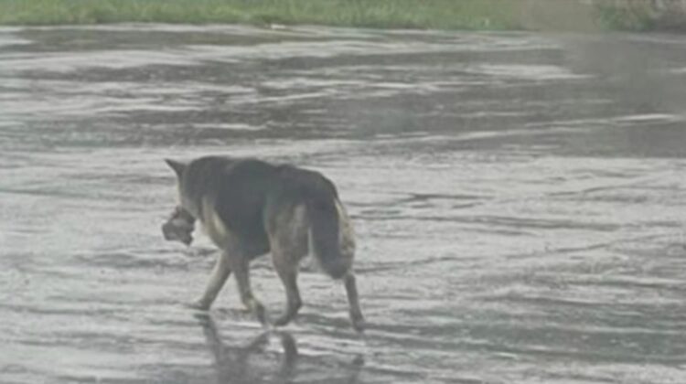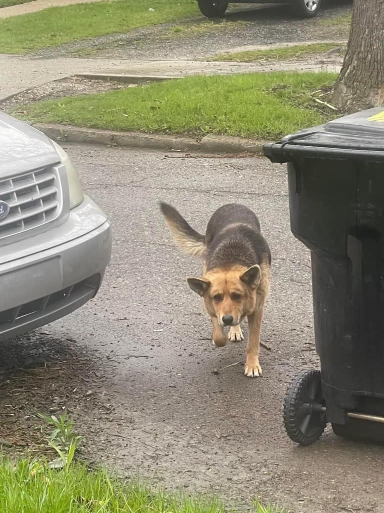 It was a deeply heartbreaking scene. A German Shepherd was seen wandering alone through the streets of Detroit, carrying nothing but her favorite stuffed animal for comfort. With no human by her side, the toy seemed to be the only familiar thing she had left.