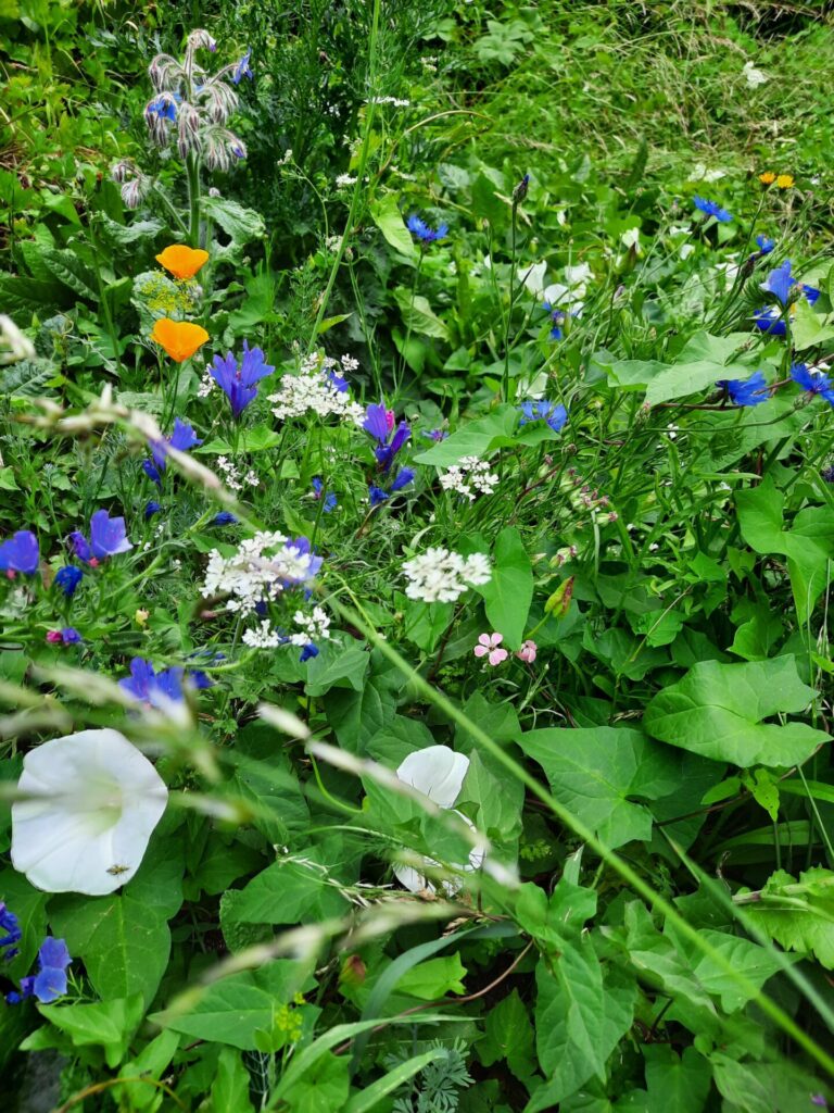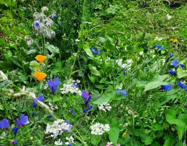 Orange, blue, pink, and white blooms now carpeted what was once plain grass — a living, breathing ecosystem full of color and life.