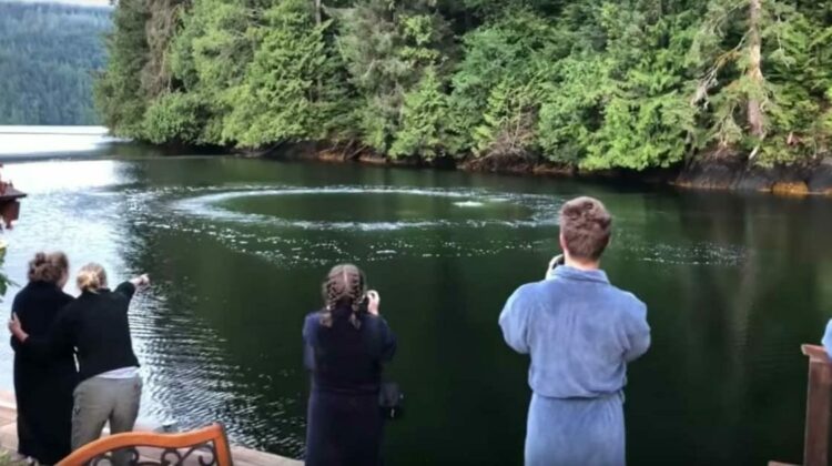 As guests sat enjoying their meal, the calm water just outside the lodge suddenly began to churn. At first, it looked like strong currents or rising bubbles. Within seconds, the surface boiled violently, drawing the attention of everyone in the room.