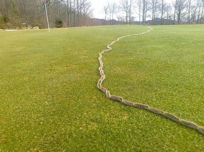 When I got close enough to look, I was beaten with horror. There wasn’t a rope. It was not a snake, either. In front of me crawled a slow-moving column of roughly 150 caterpillars, which I finally counted!