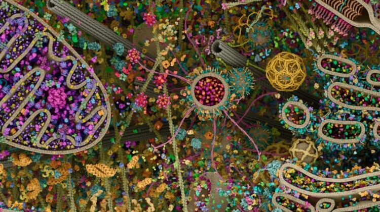 At first glance, it looks like abstract art — a riot of color, spirals, tunnels, and clustered shapes suspended in organized chaos. But this is not a painting. It is one of the most detailed visualizations of a human cell ever produced, revealing the breathtaking complexity hidden inside every living cell of your body.