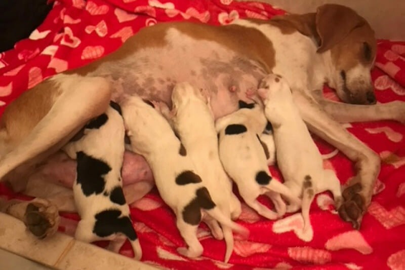 Coralina gave birth to six healthy, adorable puppies, and Art found loving homes for all of them, including Coralina.