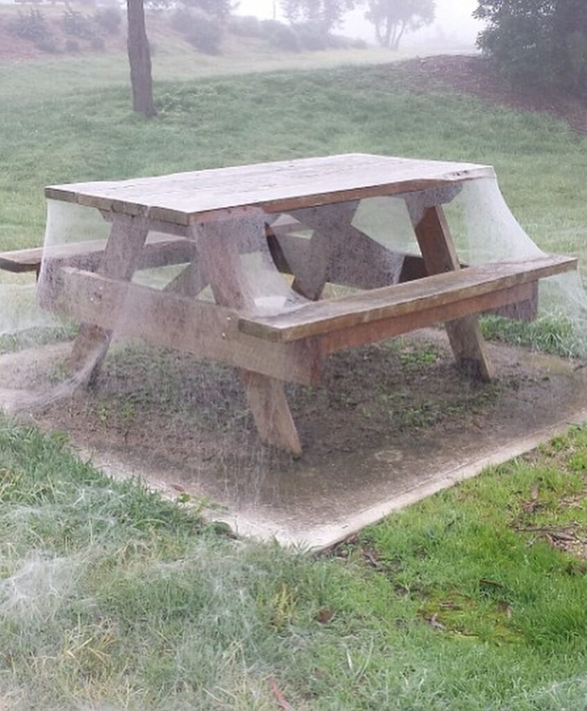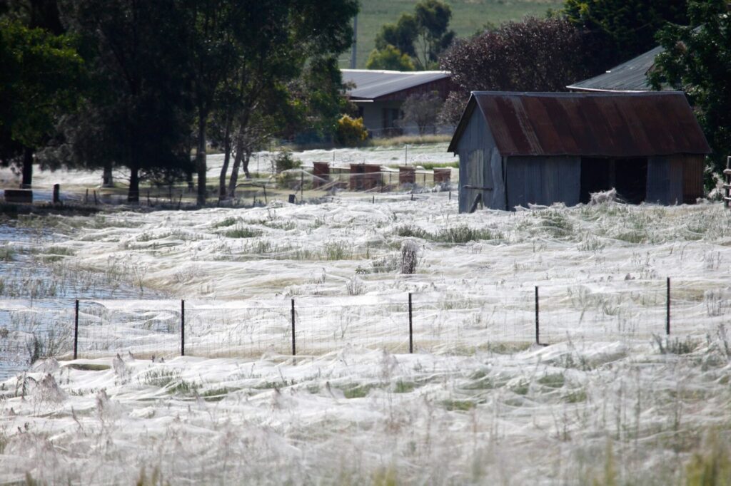 Imagine looking up at the sky and instead of raindrops, seeing millions of tiny spiders drifting down on silken threads. This was the astonishing scene in southern Australia’s Southern Tablelands, where locals recently reported what looked like “snowfall” — but made entirely of spider silk.