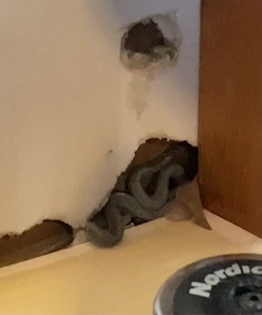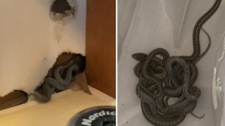 Reportedly, the large serpents had coiled up inside the wall beside the door that led from her garage to the yard. Alarmingly, when Hall placed her hand further up the wall, she could feel warmth, indicating that there were more of the creatures hidden away.
