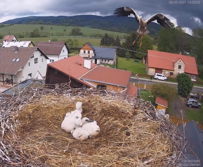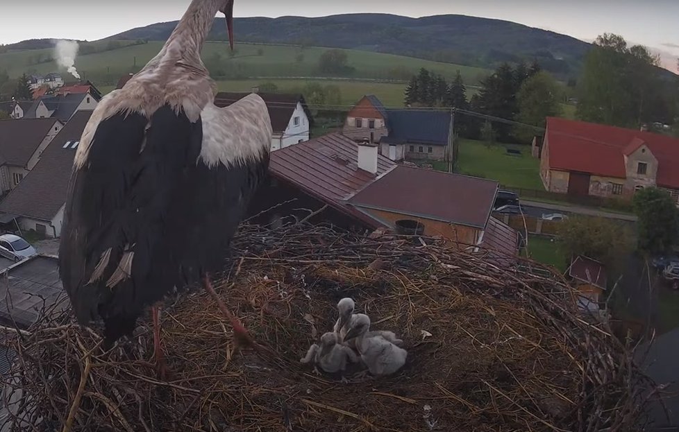 Partner Dies: Stork Dad Now Left to Raise Three Chicks Alone