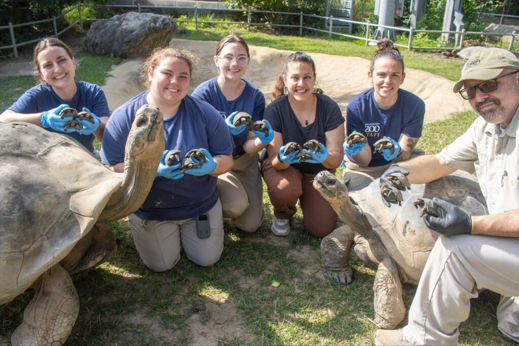 The Philadelphia Zoo is celebrating a once-in-a-lifetime milestone: the birth of 16 critically endangered western Santa Cruz tortoises, all born to a pair of parents estimated to be around 100 years old.