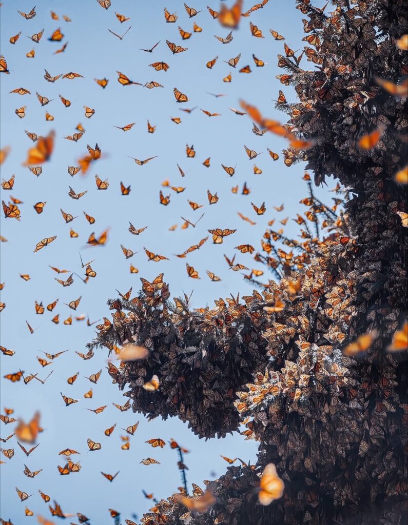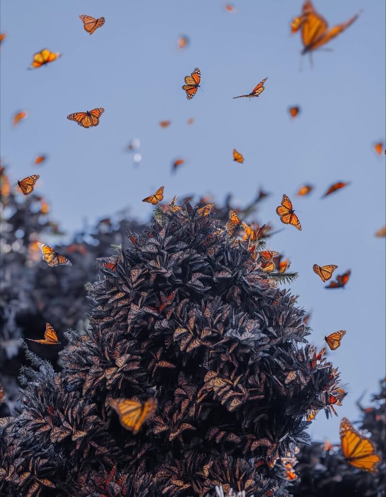 Recently, a wildlife photographer managed to capture this mesmerizing event in stunning detail — the air thick with shimmering wings, sunlight breaking through clouds as entire trees appear to move with the pulse of life. His photos reveal not only the scale of the monarch migration but also the fragile beauty of a species whose journey defies all odds.